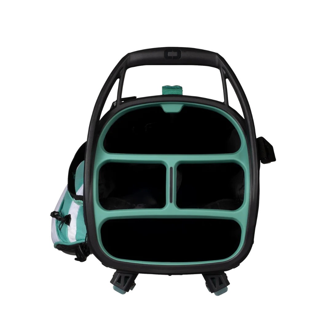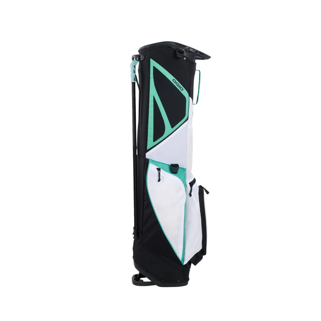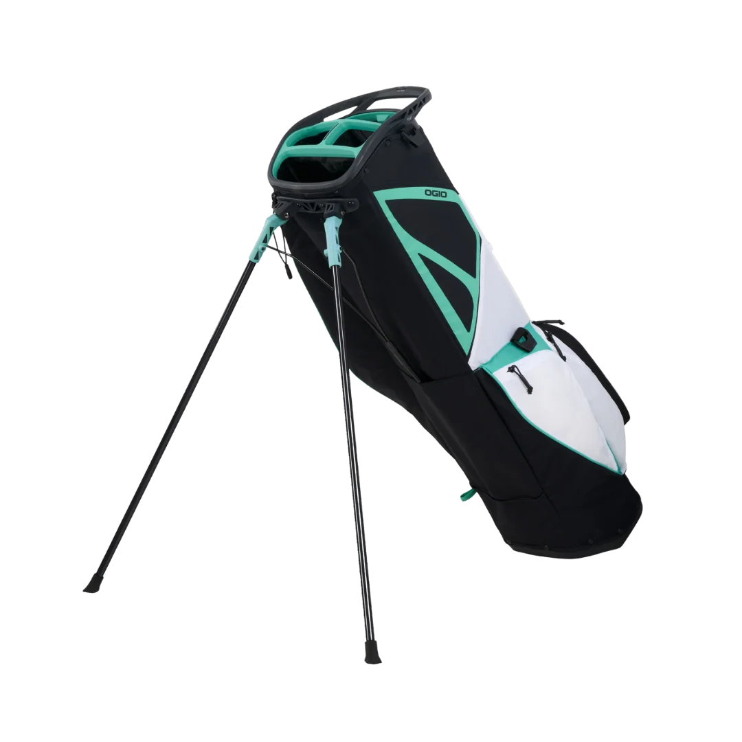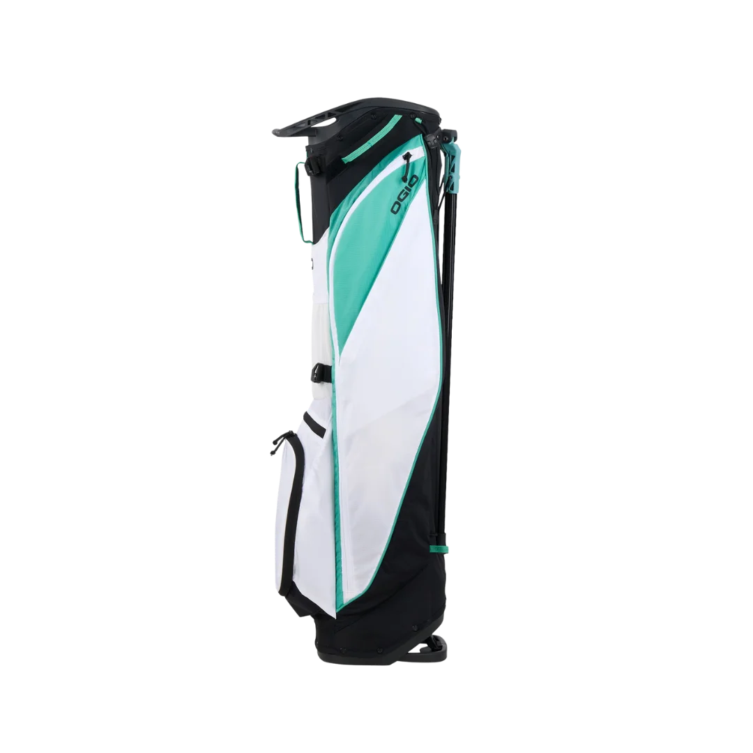 The Ogio Featherlite Golf Stand Bag '26 is Ogio's lightest stand bag yet for walkers who hate lugging extra weight around the course. It's constructed from ultra-lightweight ripstop nylon with reinforced stress points that hold up to years of abuse without tearing. The lightweight stand legs pop out smooth and lock solid on uneven lies so you grab clubs fast without the bag tipping. Dual strap system with a chest clip spreads the load evenly across your shoulders and back keeping you fresh through 18 holes. You get smart pocket layout with a dedicated cooler pocket and full-length apparel storage so nothing gets buried. If you walk regularly and want max lightness without skimping on function this bag delivers real carry relief.