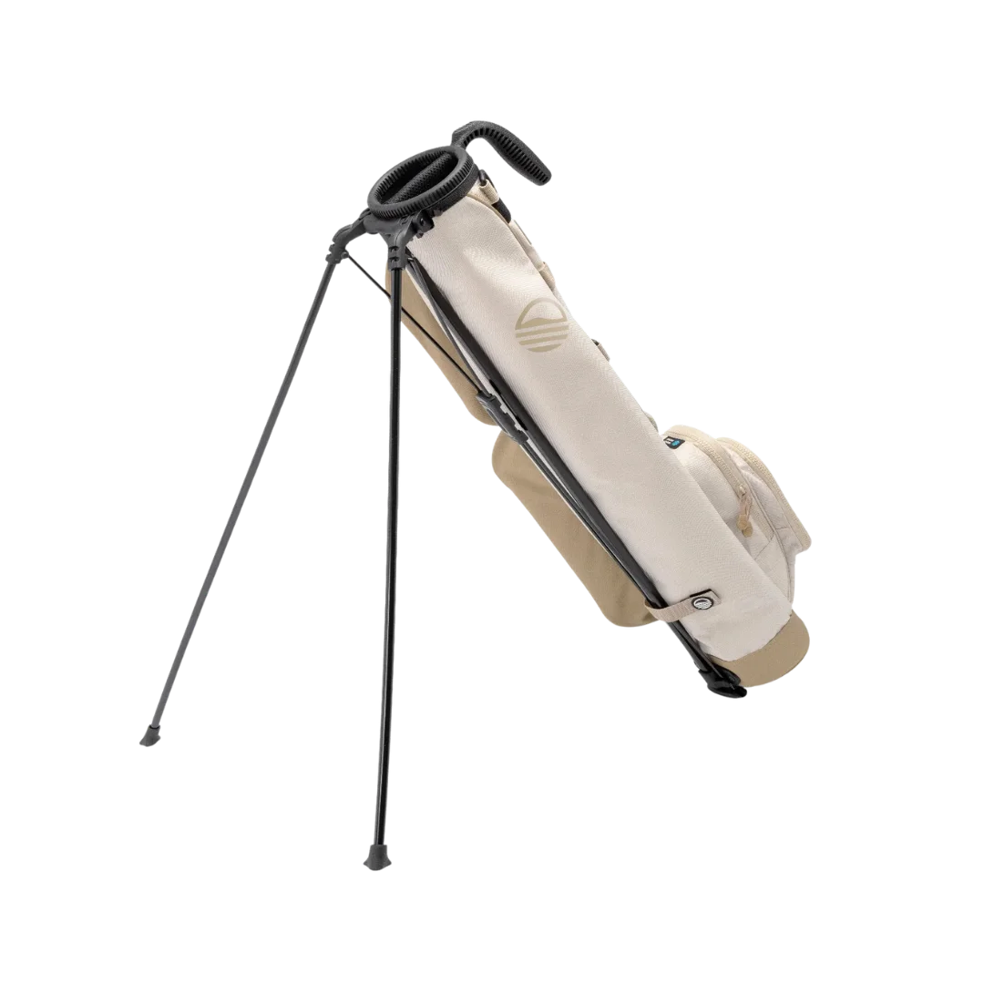 The Loma is Sunday Golf's ultra-light par-3 bag built for golfers who want to grab a few clubs and get out on the short course, range, or quick nine without hauling a full bag around. At just 1.95 pounds (the weight of 2 soda cans), the premium ripstop nylon construction with water-resistant zippers shrugs off dew and light rain without adding bulk. The 2-way full-length divider top holds up to six clubs cleanly, the dual-flex stand pops out stable on any terrain, and the pocket layout covers everything you actually need including an insulated cooler pocket, velour-lined valuables pocket, and a dedicated rangefinder sleeve. At this price with a lifetime warranty, it is the easiest decision for golfers who want a purpose-built light carry without paying for features they will never use.