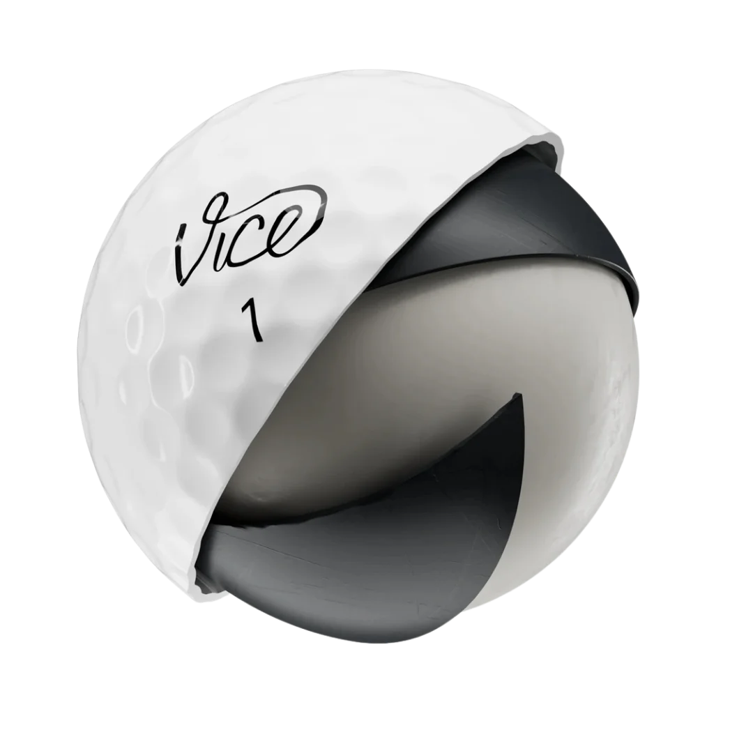 Vice Pro features a high-energy react core with gradient compression for balanced speed and spin plus thin cast urethane cover for maximum greenside friction. 318 aero dimple pattern optimizes mid trajectory stability enhancing control without excessive driver spin.