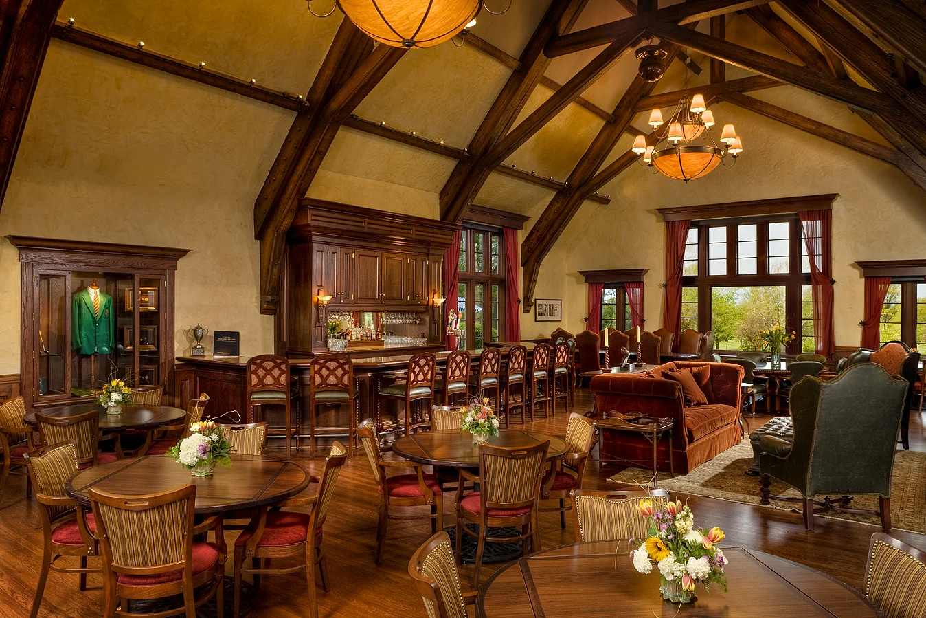 A stately clubhouse with full-service dining, men’s and women’s locker rooms, banquet and event spaces, golf shop, and lounge. The club offers fitness facilities, professional services, and traditional private club comforts in an elegant setting.